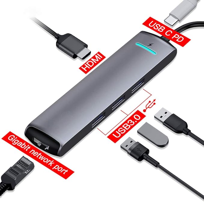 Yhml Usb Hub C Typ C Zu Hdmi Rj45 Ethernet Mehrfachanschluss Usb 3 0 Usb 3 0 Pd Netzteil Fur Macbook Pro Usb C Hub Air Hab Amazon De Sport Freizeit