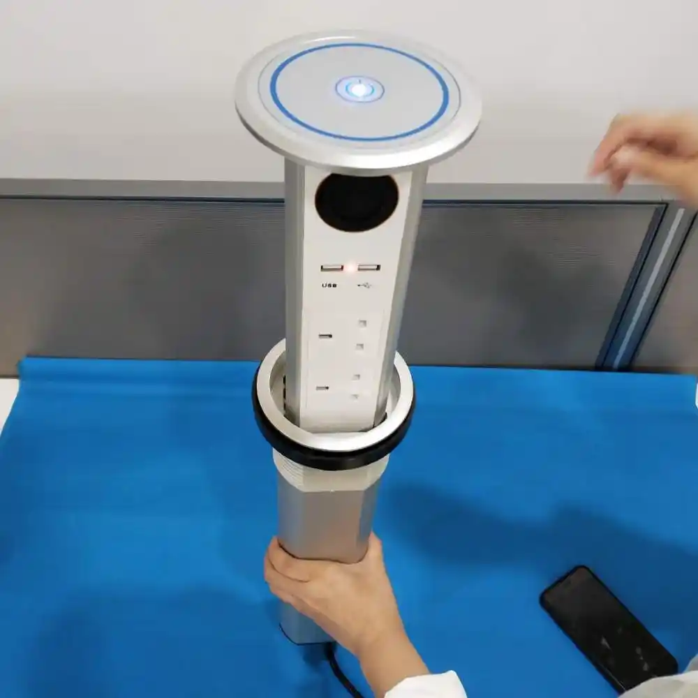 China Motorized Pop Up Socket With Bluetooth Speaker And Wireless Charger And 2 Usb Charger For Kitchen With Led Type Outlet China Power Socket Power Outlet