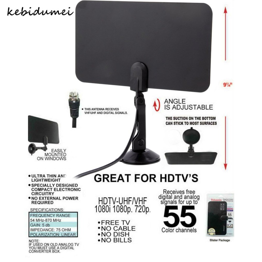 Digital Indoor Tv Antenna Hdtv Dtv Box Ready Hd Vhf Uhf Flat Design High Gain